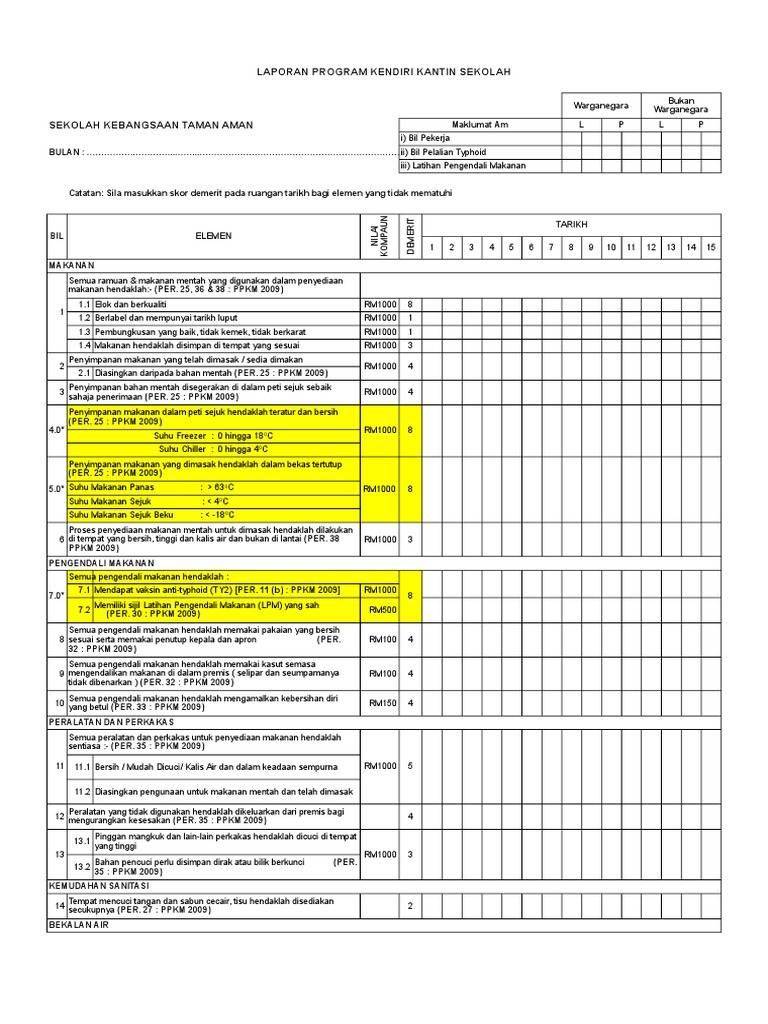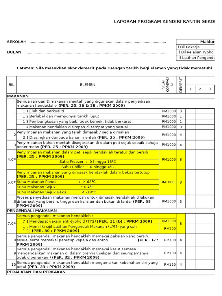 Borang Kendiri 1a 1b 2 2011 Laporan Pemeriksaan Kendiri Kantin Dan