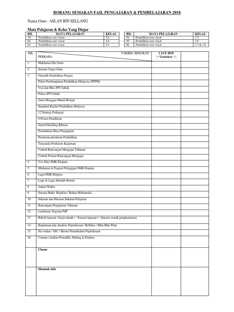 2017 Terkini Rpp Borang Semakan Fail 2018