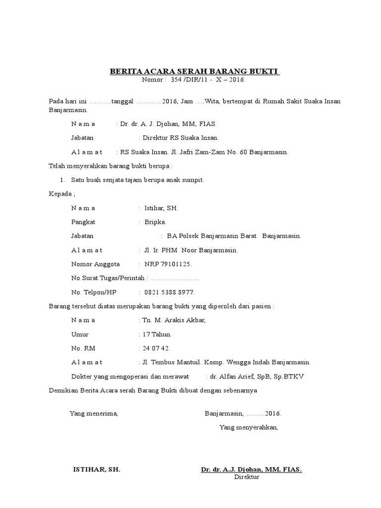 Surat Berita Acara Serah Barang Bukti