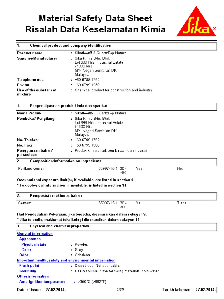Sikafloor 3 Quartztop Material Safety Data Sheet Waste Management Waste