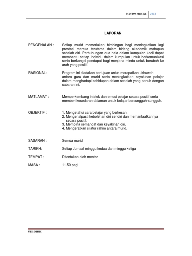 Contoh Kertas Kerja Program Champion Mentor Mentee Champion