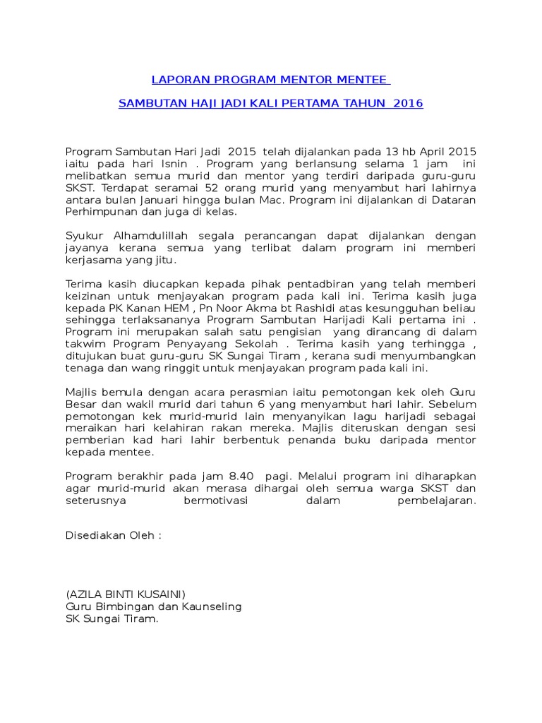 Laporan Pelaksanaan Program Mentor Mentee 1