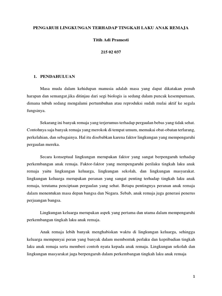 Pengaruh Lingkungan Terhadap Tingkah Laku Anak Remaja