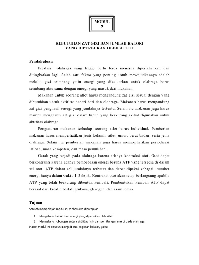Pdf Modul9 Kebutuhan Zat Gizi Dan Jumlah Kalori Yang Diperlukan Oleh Atlet Heatubun Agustinus Academia Edu