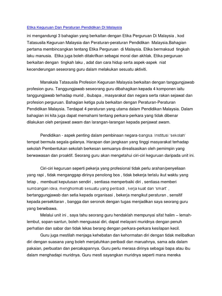 Etika Keguruan Dan Peraturan Pendidikan Di Malaysia
