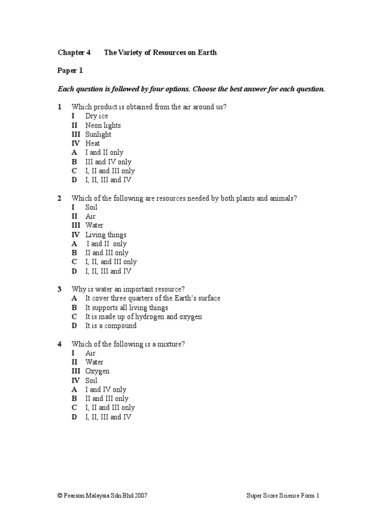 Science Form 1 Chapter 4 Question