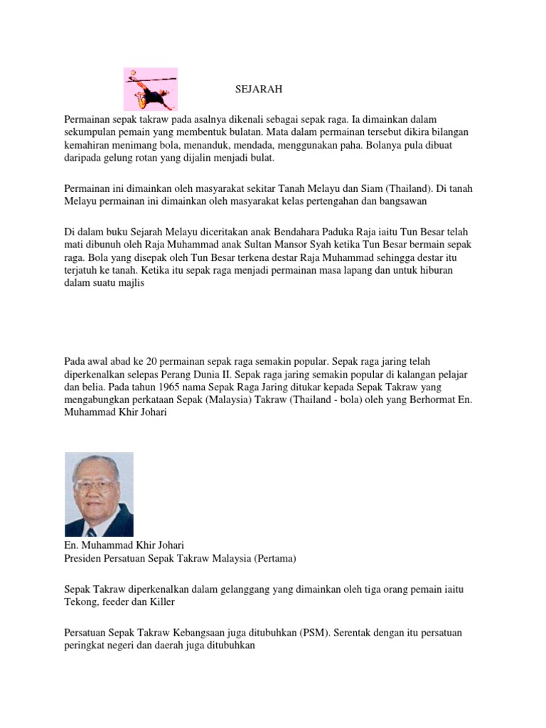 Doc Asal Usul Sepak Takraw Noraini Bain Academia Edu