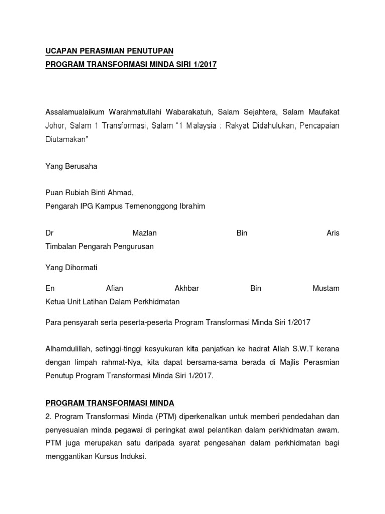 Ucapan Perasmian Penutupan Ptm