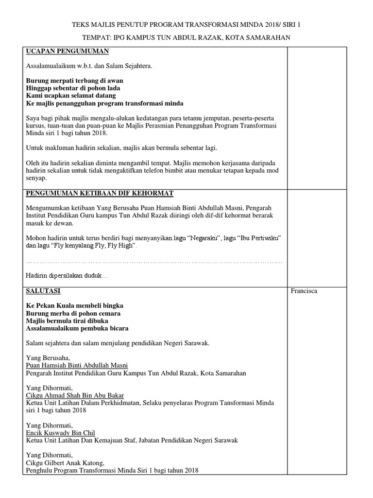 Teks Majlis Penutup Program Transformasi Minda 2018