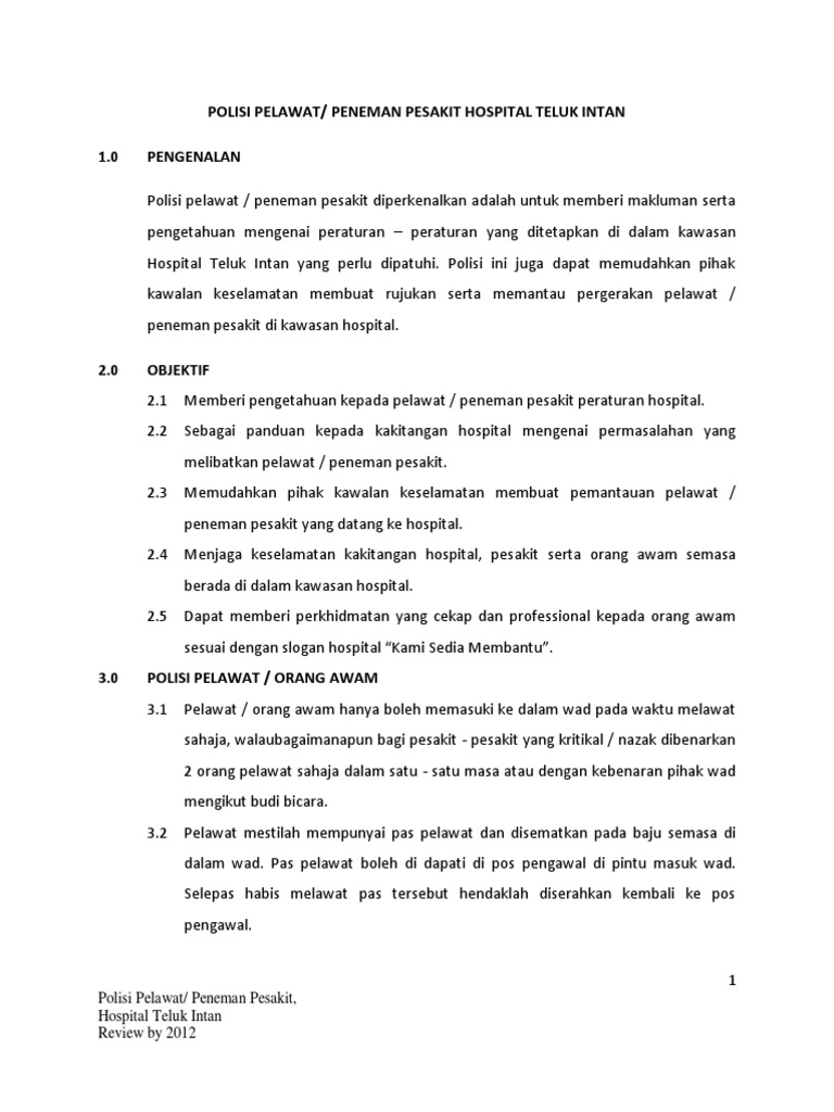 Polisi Pelawat Dan Peneman Pesakit 2014